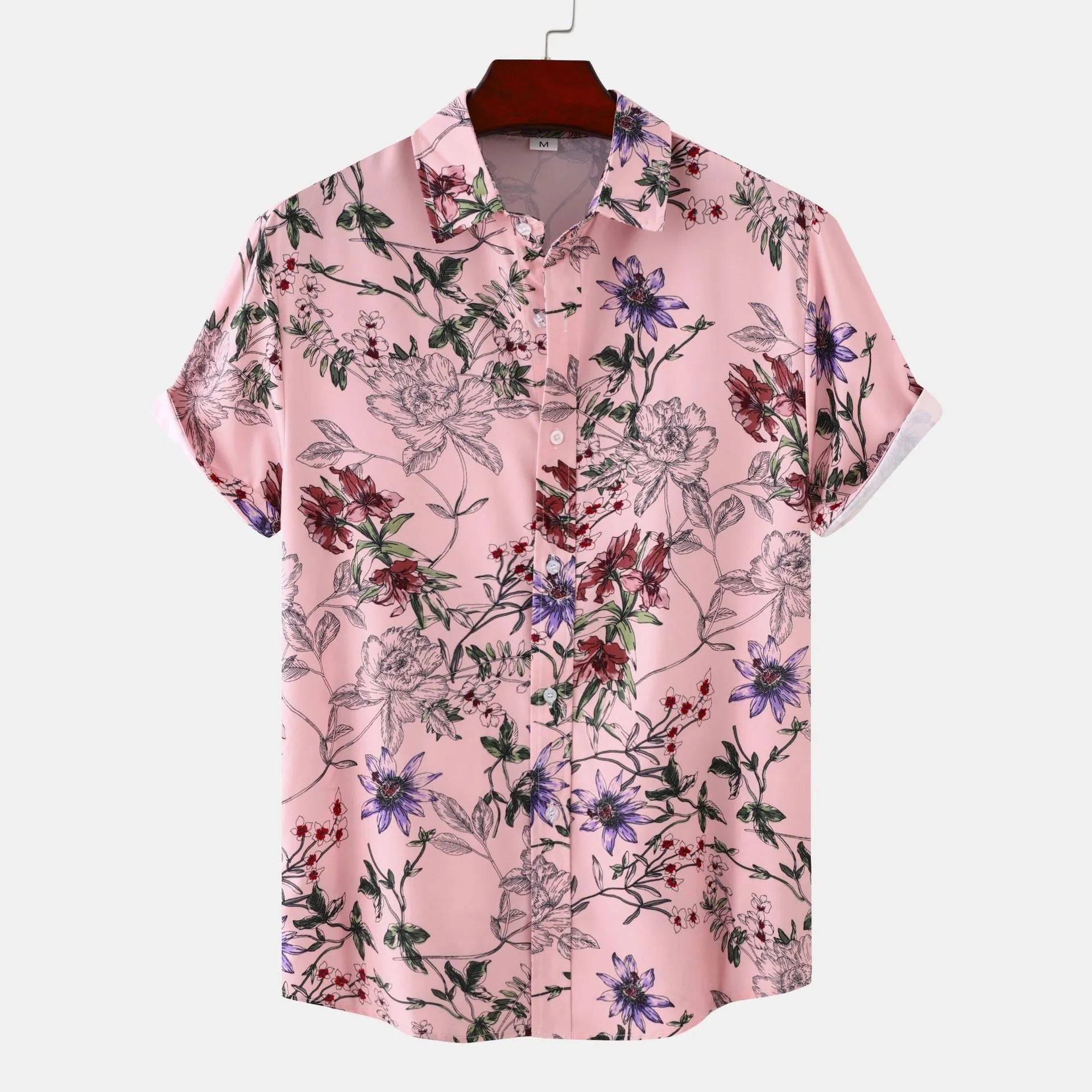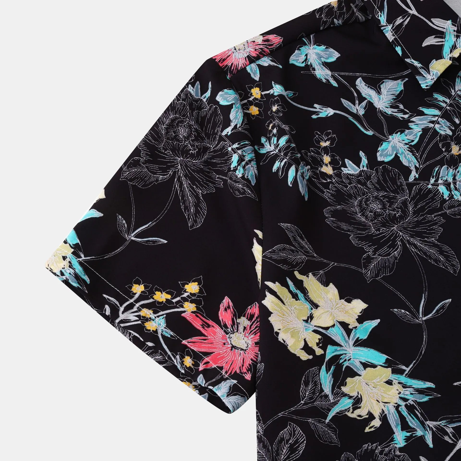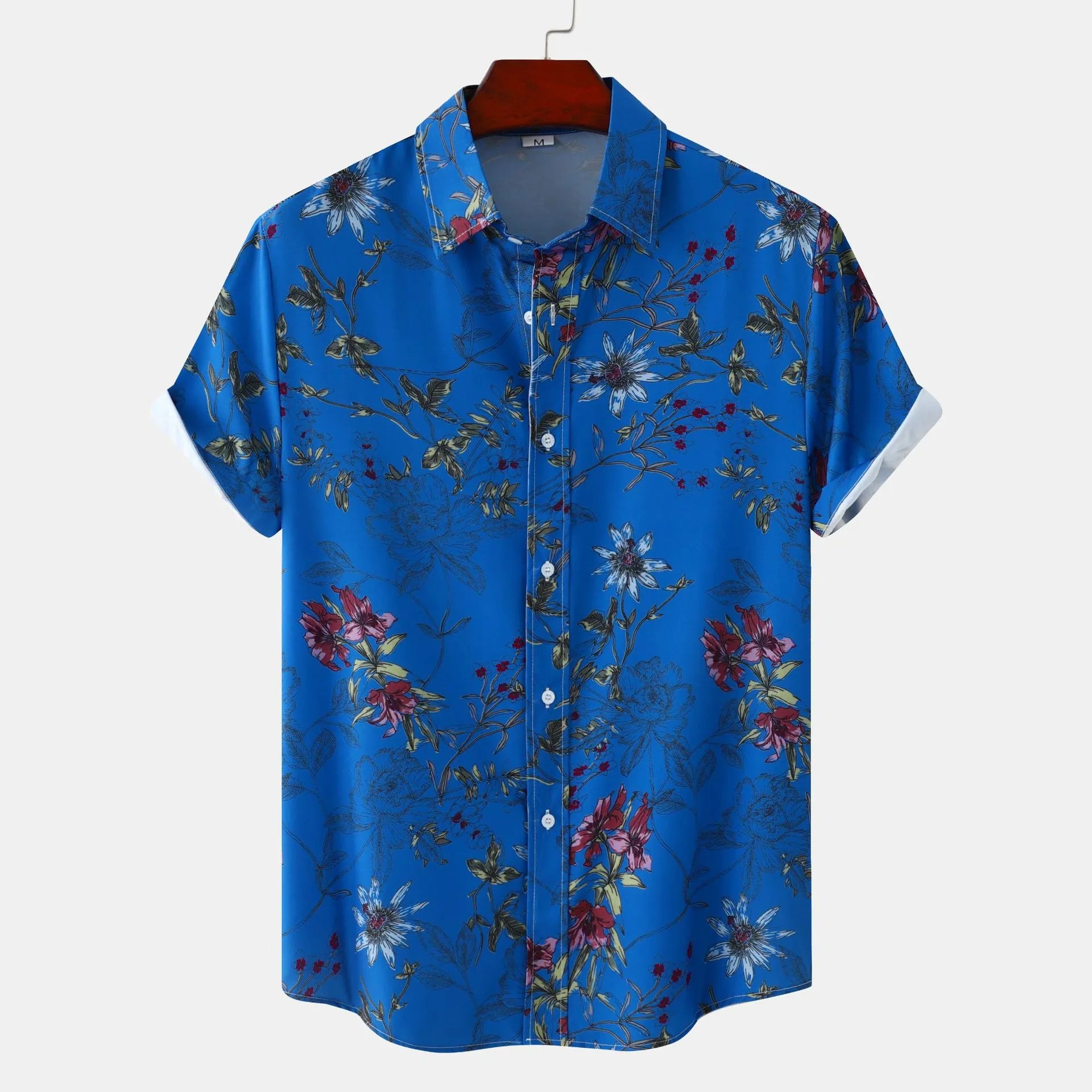 Men's Plus Size Floral Print Short Sleeve Button Down Casual Shirt