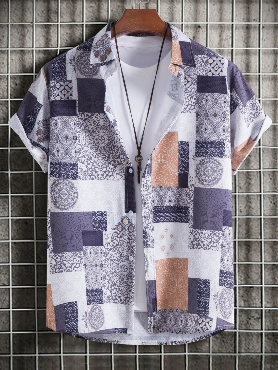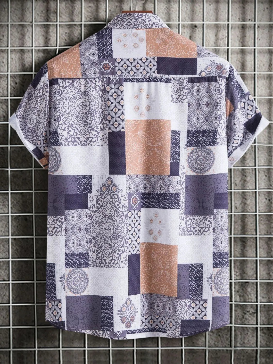 Men's Plus Size Printed Short Sleeve Casual Shirt