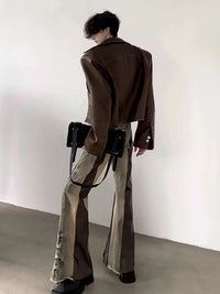 Men's Plus Size Vintage Washed Two-Tone Flare Jeans
