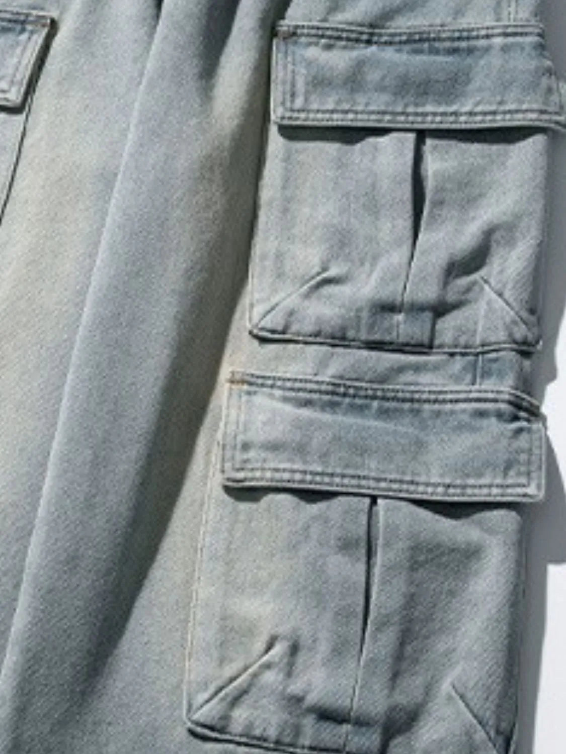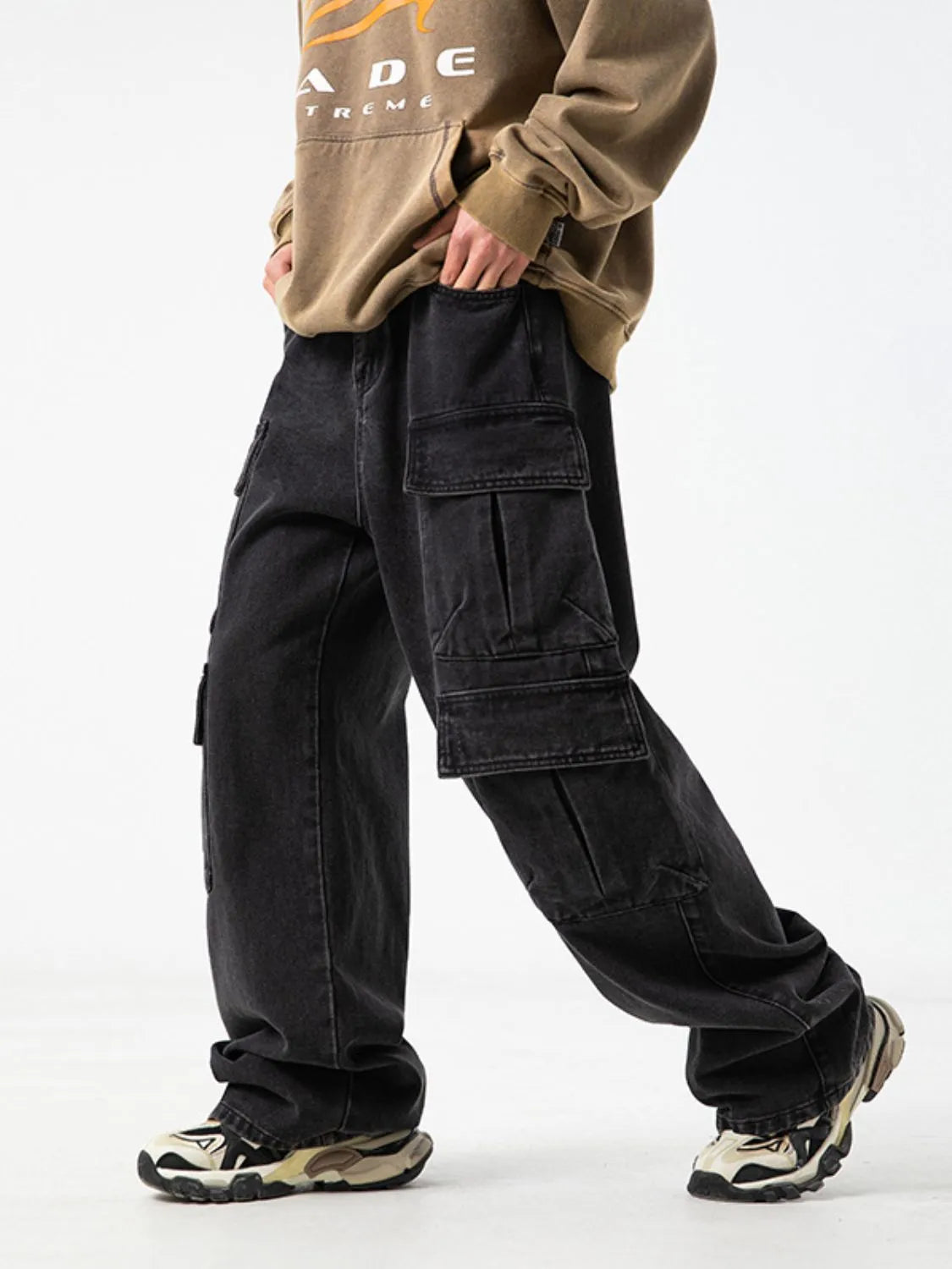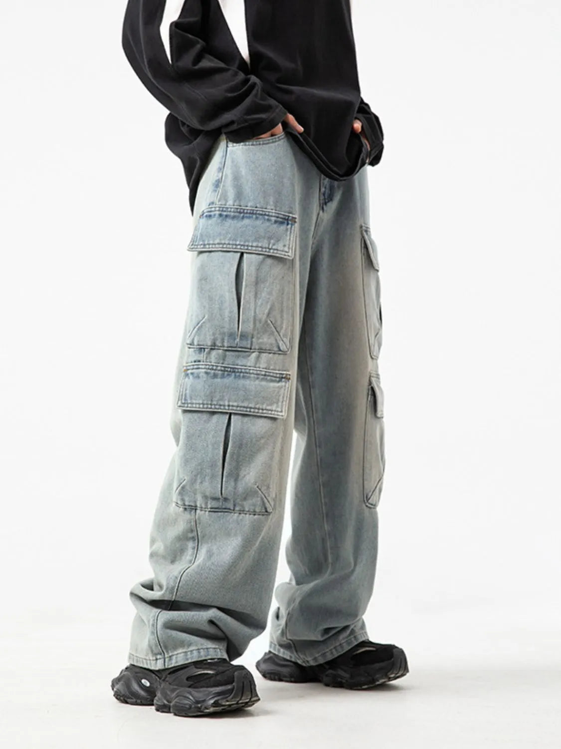 Men's Plus Size Wide Leg Jeans with Cargo Pockets