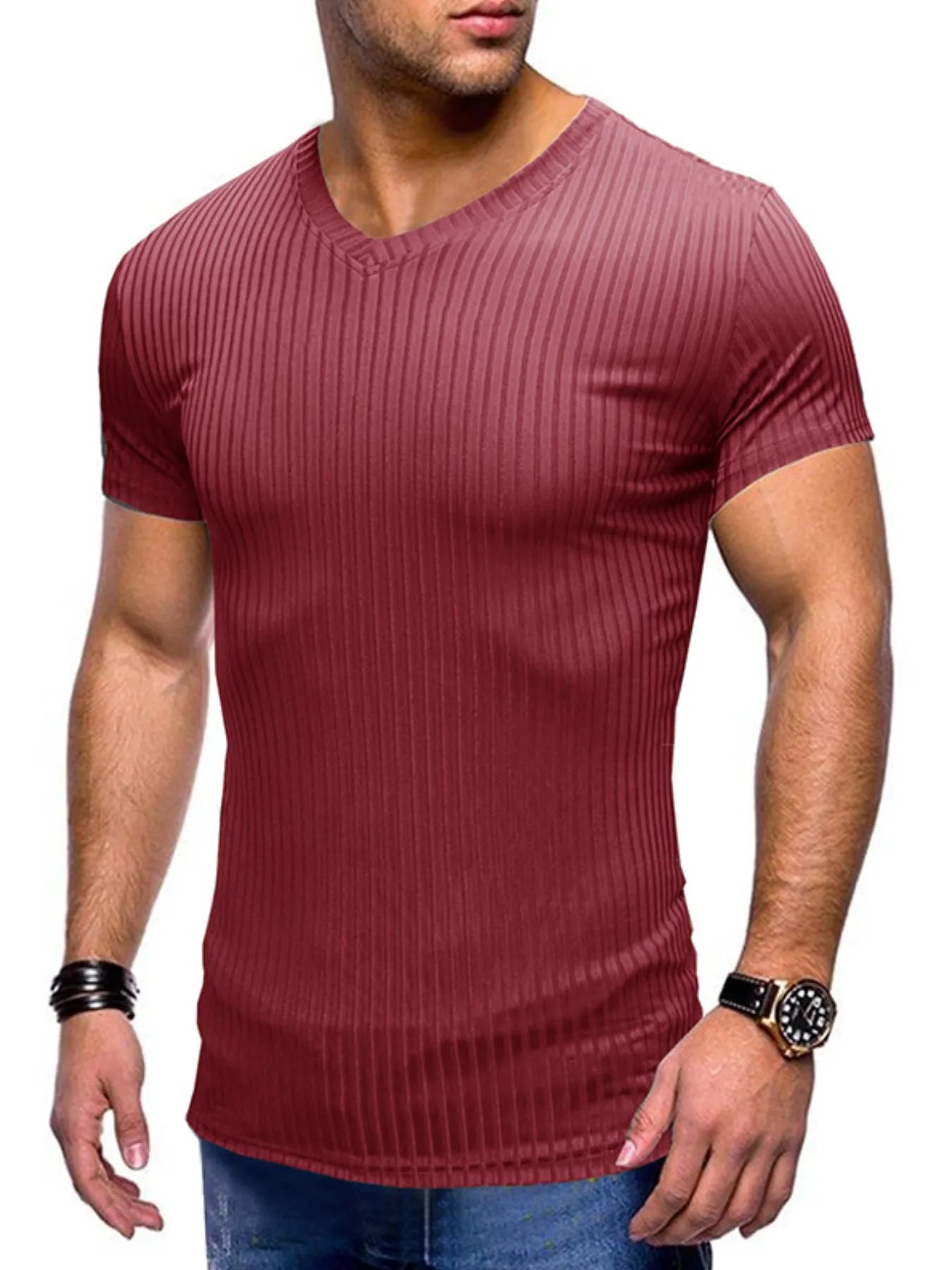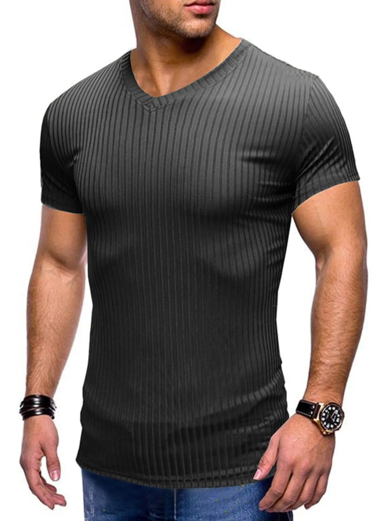Men's Ribbed Short Sleeve Slim Fit T-Shirt