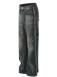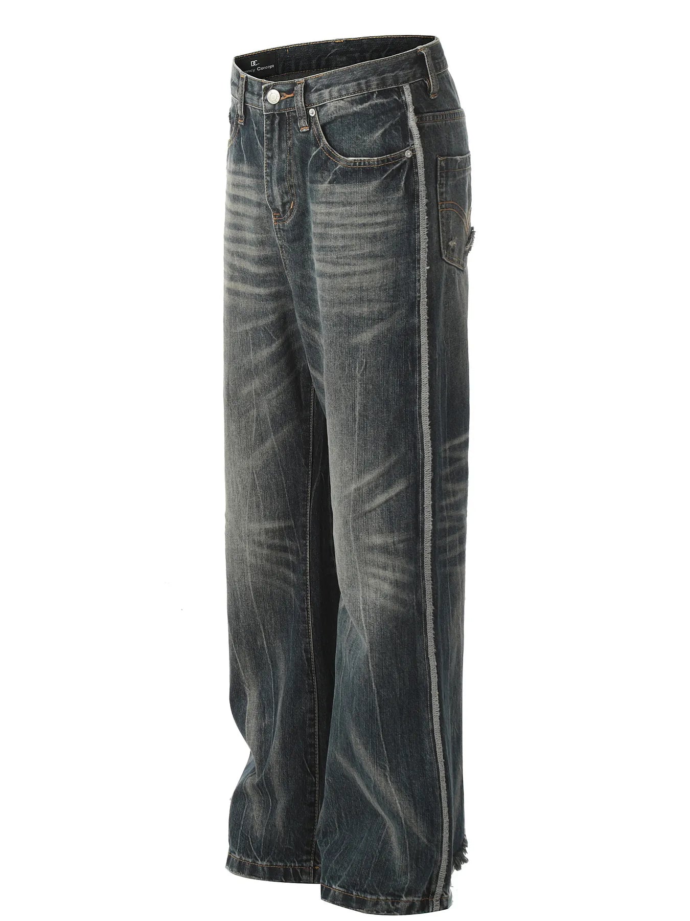 Men's Seam Detail Cat's Whisker Washed Straight Jeans