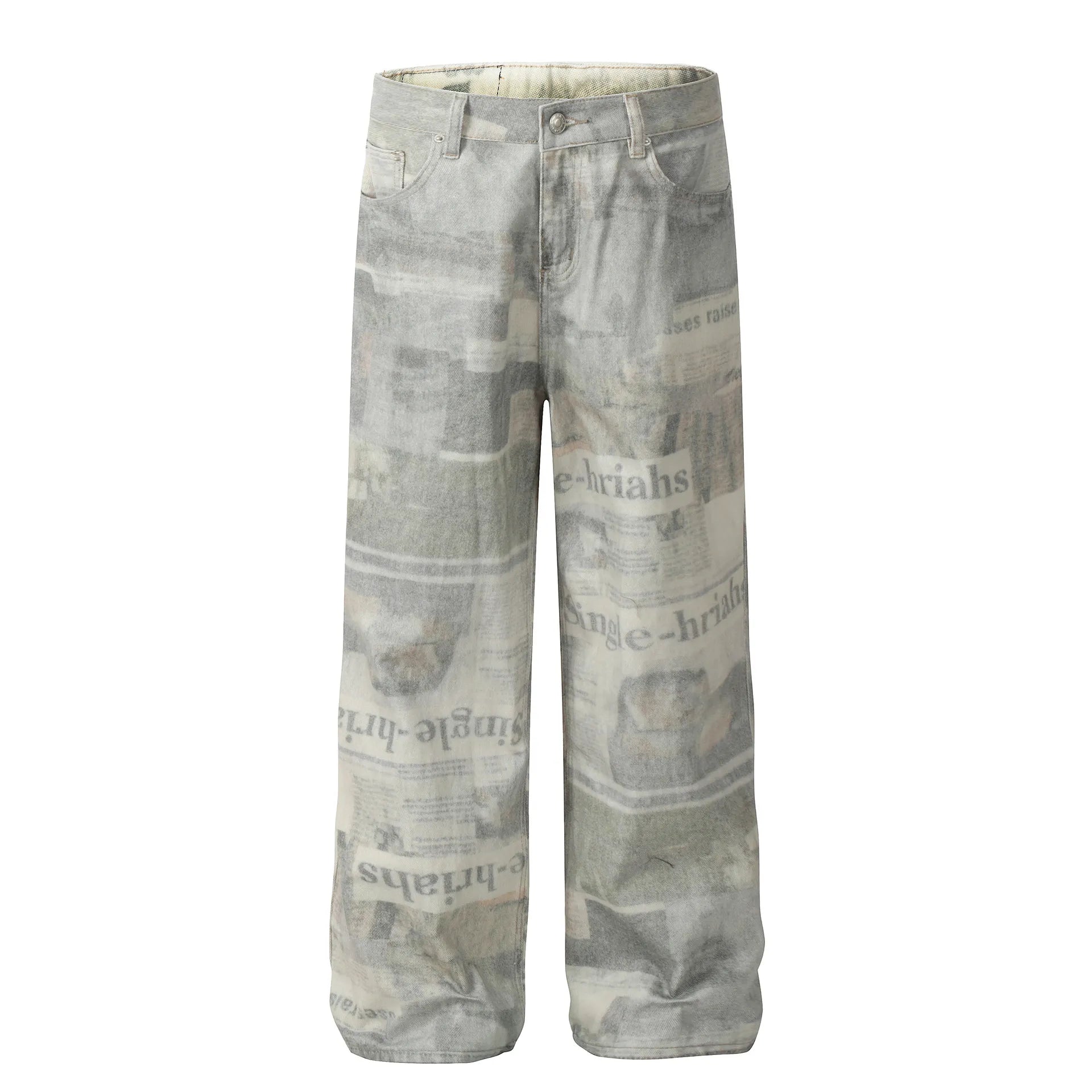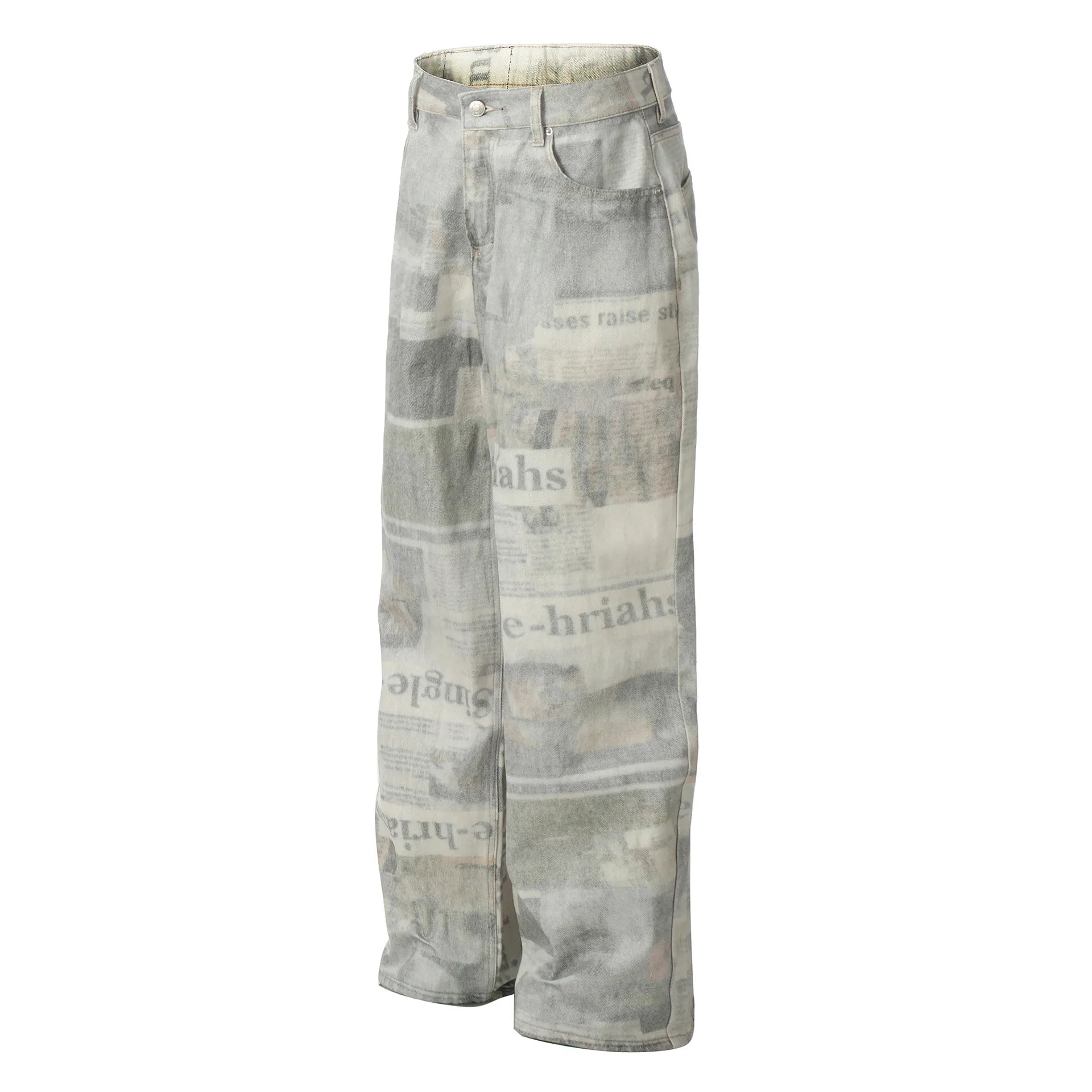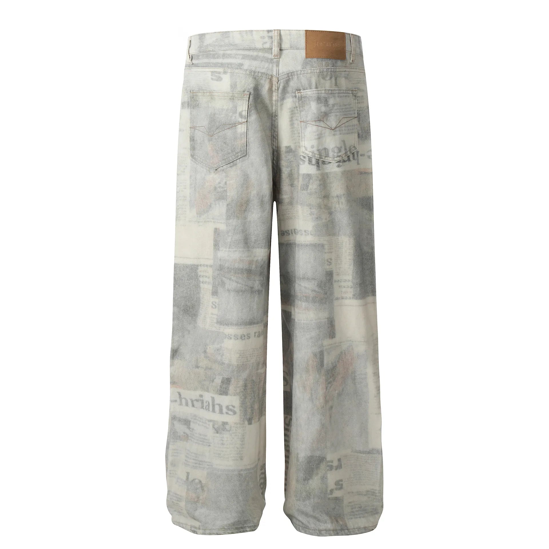 Men's Vintage Newspaper Print Wide Leg Baggy Jeans