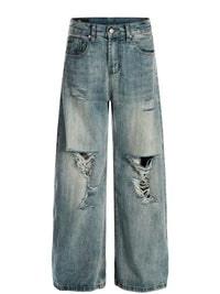 Men's Vintage Washed Distressed Wide Leg Jeans