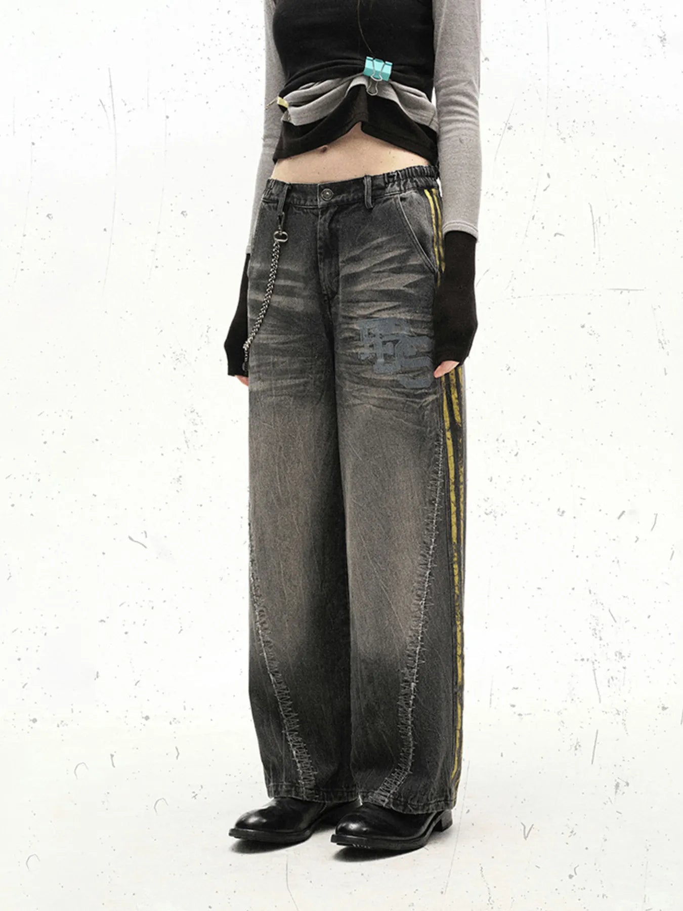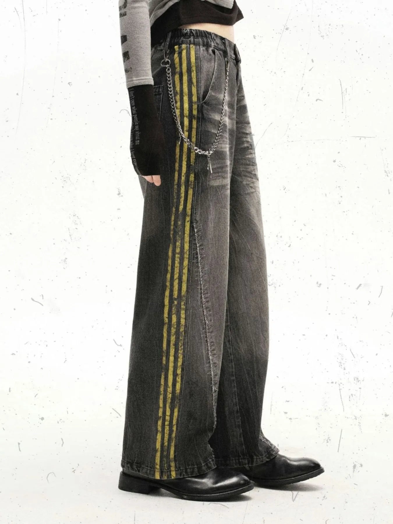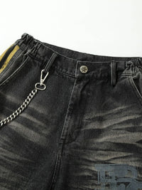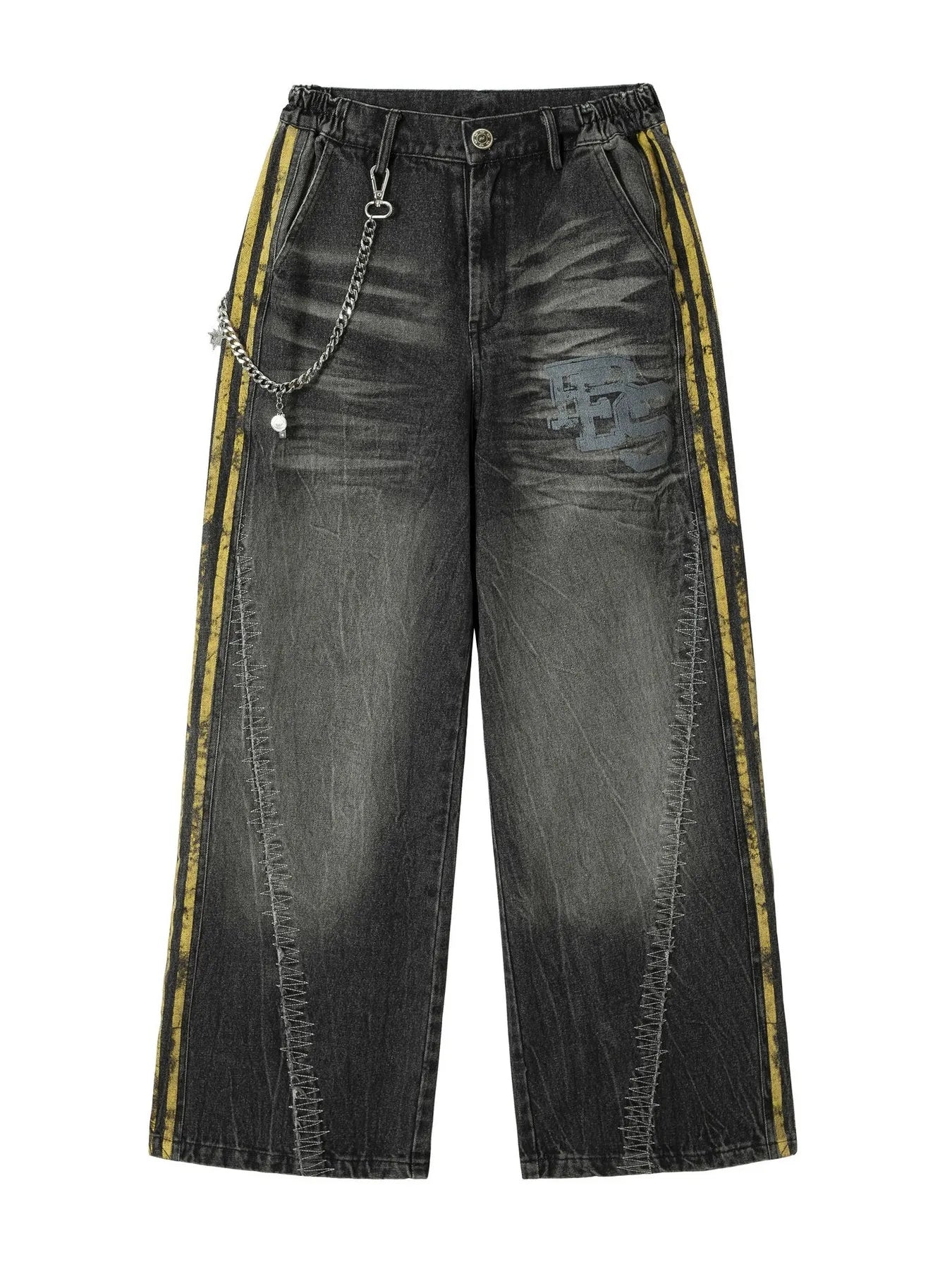 Men's Vintage Washed Wide Leg Jeans with Chain Detail