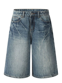 Men's Wash Wide-Leg Denim Shorts