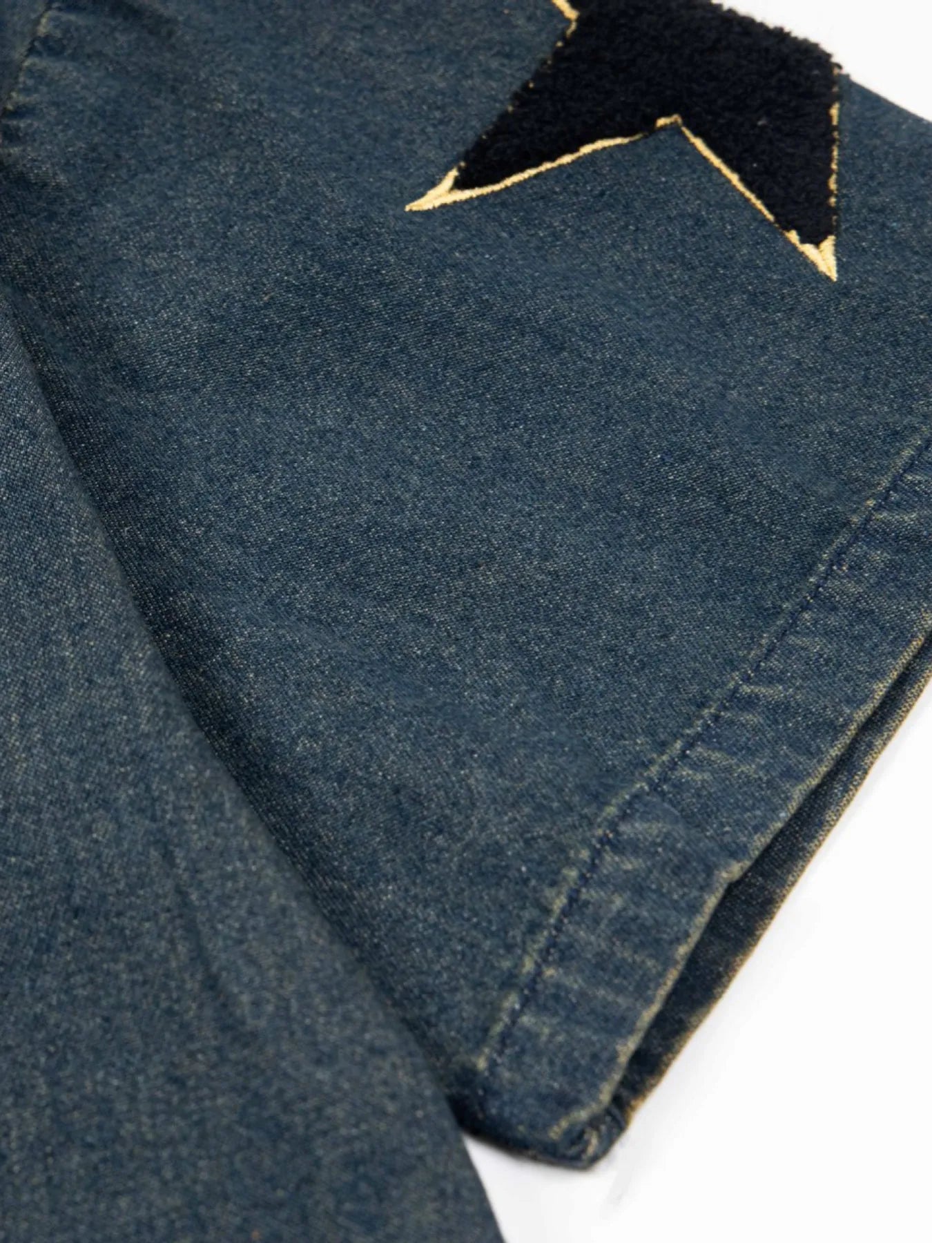 Men's Washed Baseball Collar Denim Shirt with Embroidered Detail