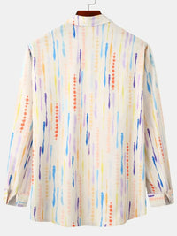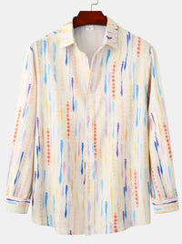Men's Watercolor Stripe Print Long Sleeve Shirt