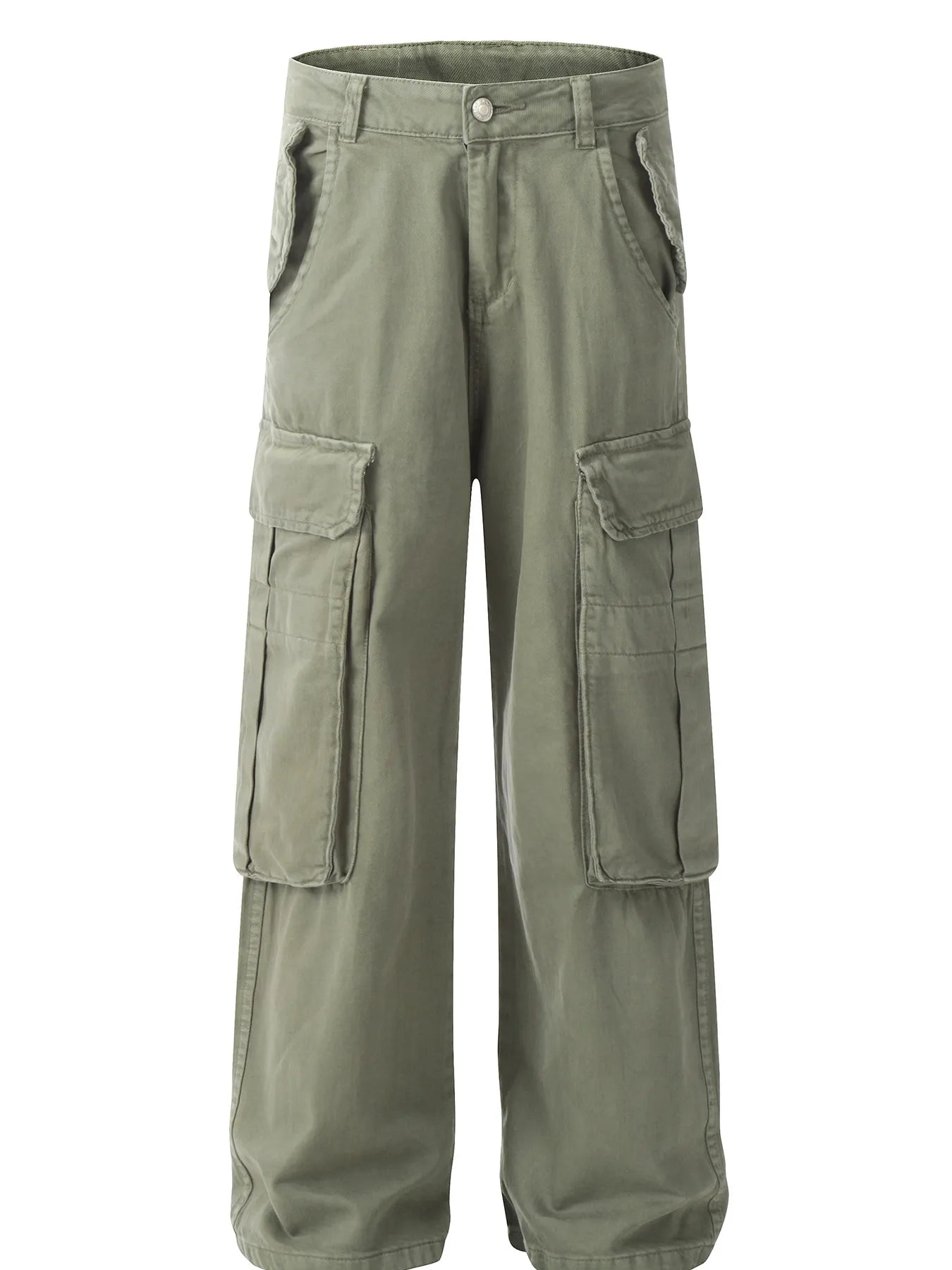 Men's Wide Leg Cargo Jeans with Multi Pockets