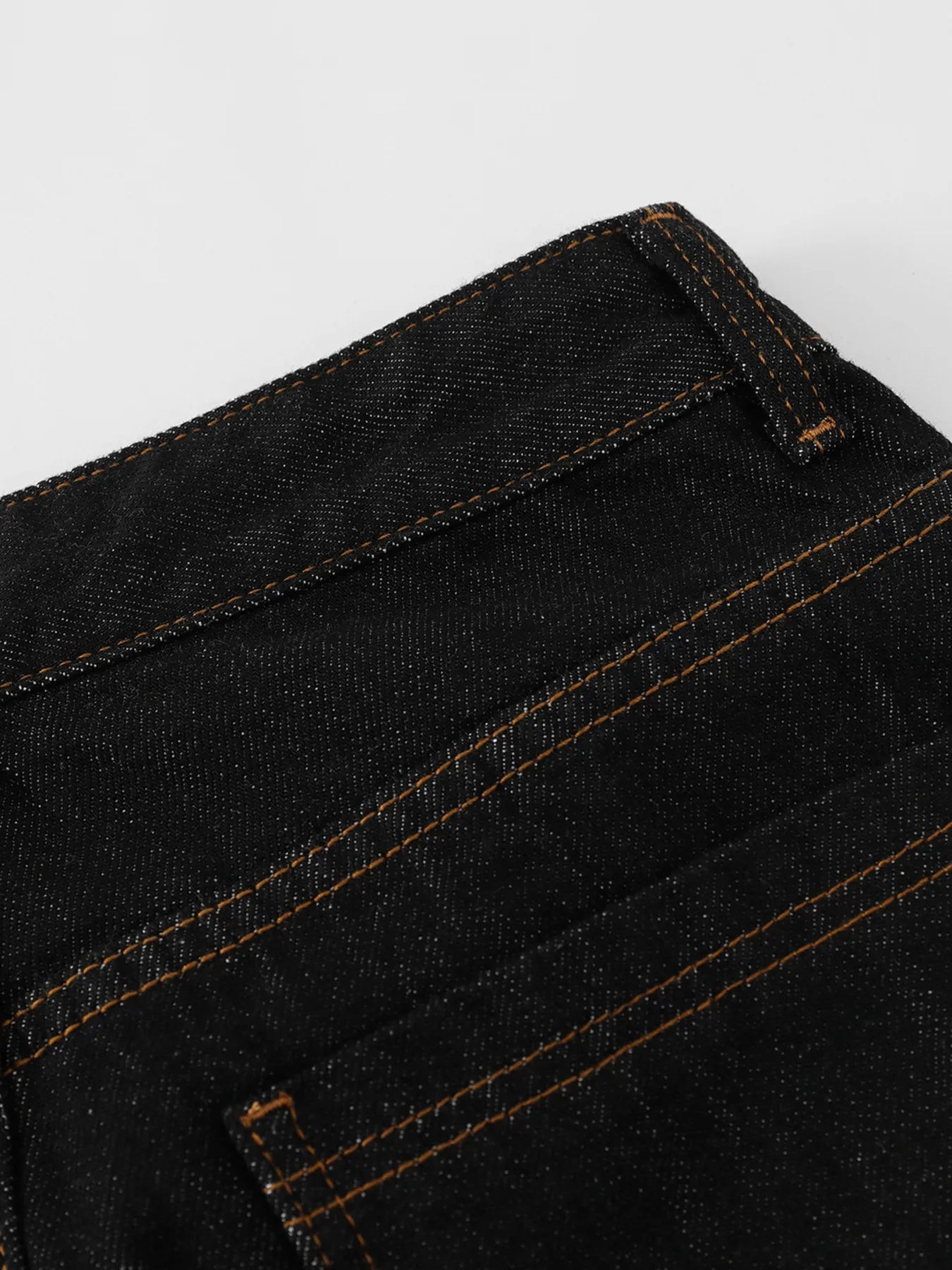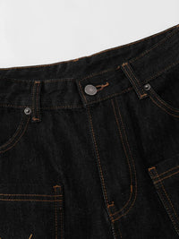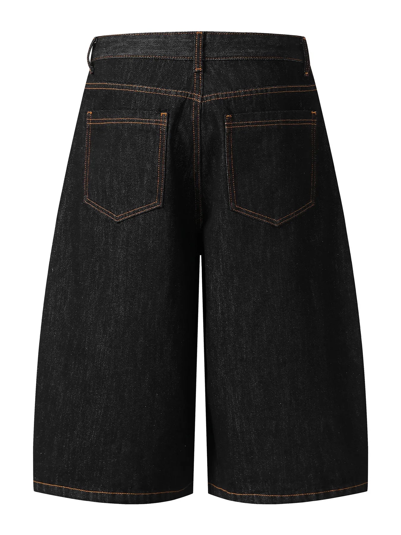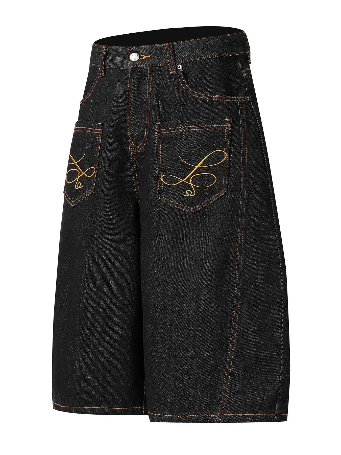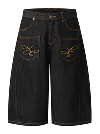 Men's Wide Leg Denim Shorts with Embroidered Pocket Detail