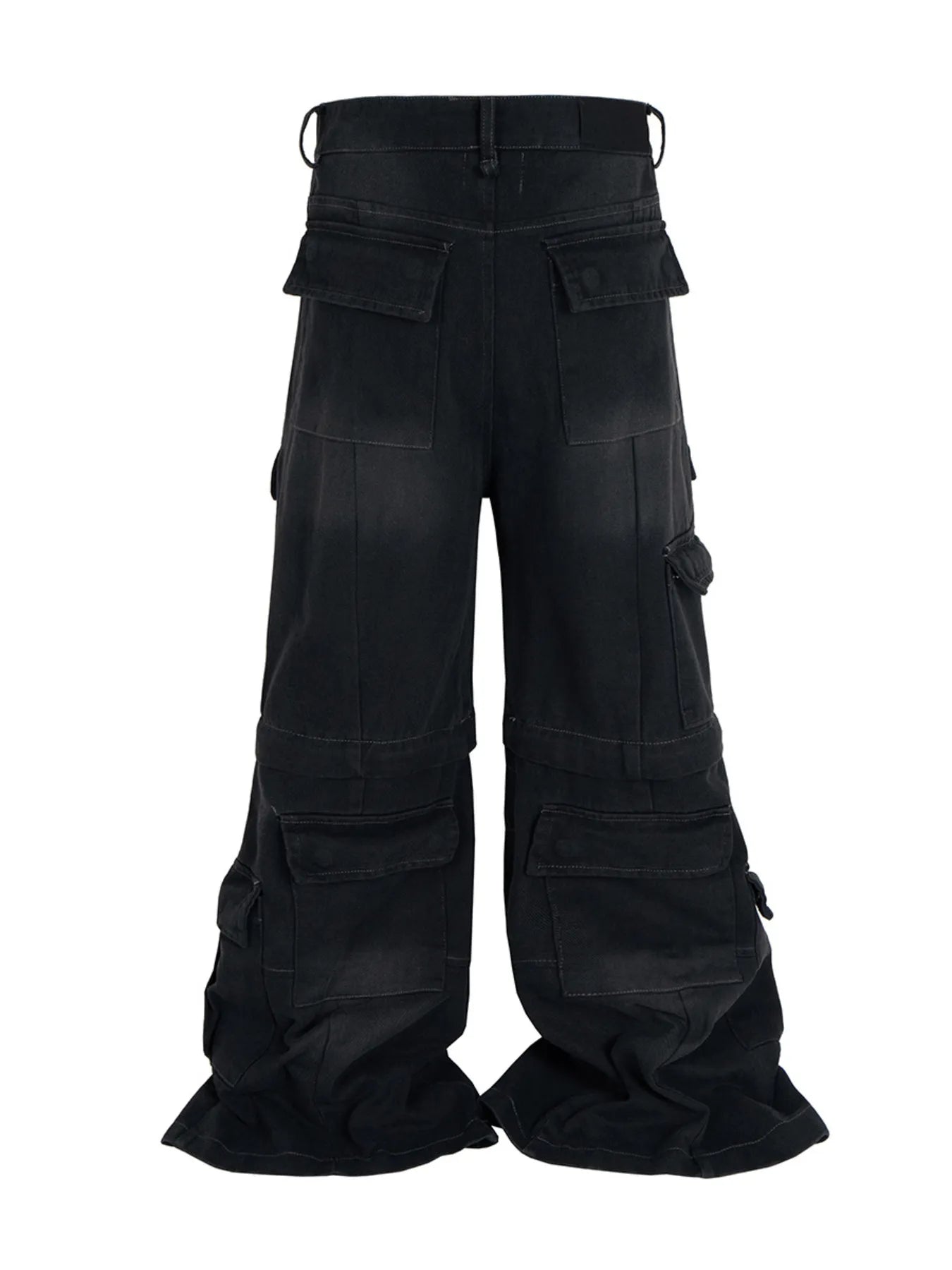 Men's Wide Leg Detachable Cargo Jeans with Multi-Pockets