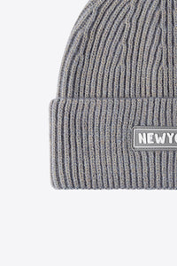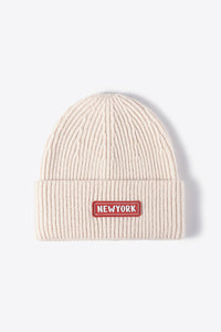 NEWYORK Patch Rib-Knit Cuffed Beanie