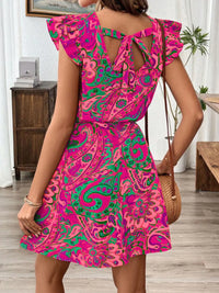 Paisley Print Ruffle Sleeve Mini Dress