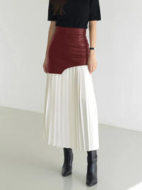 Patchwork Contrast Pleated Skirt