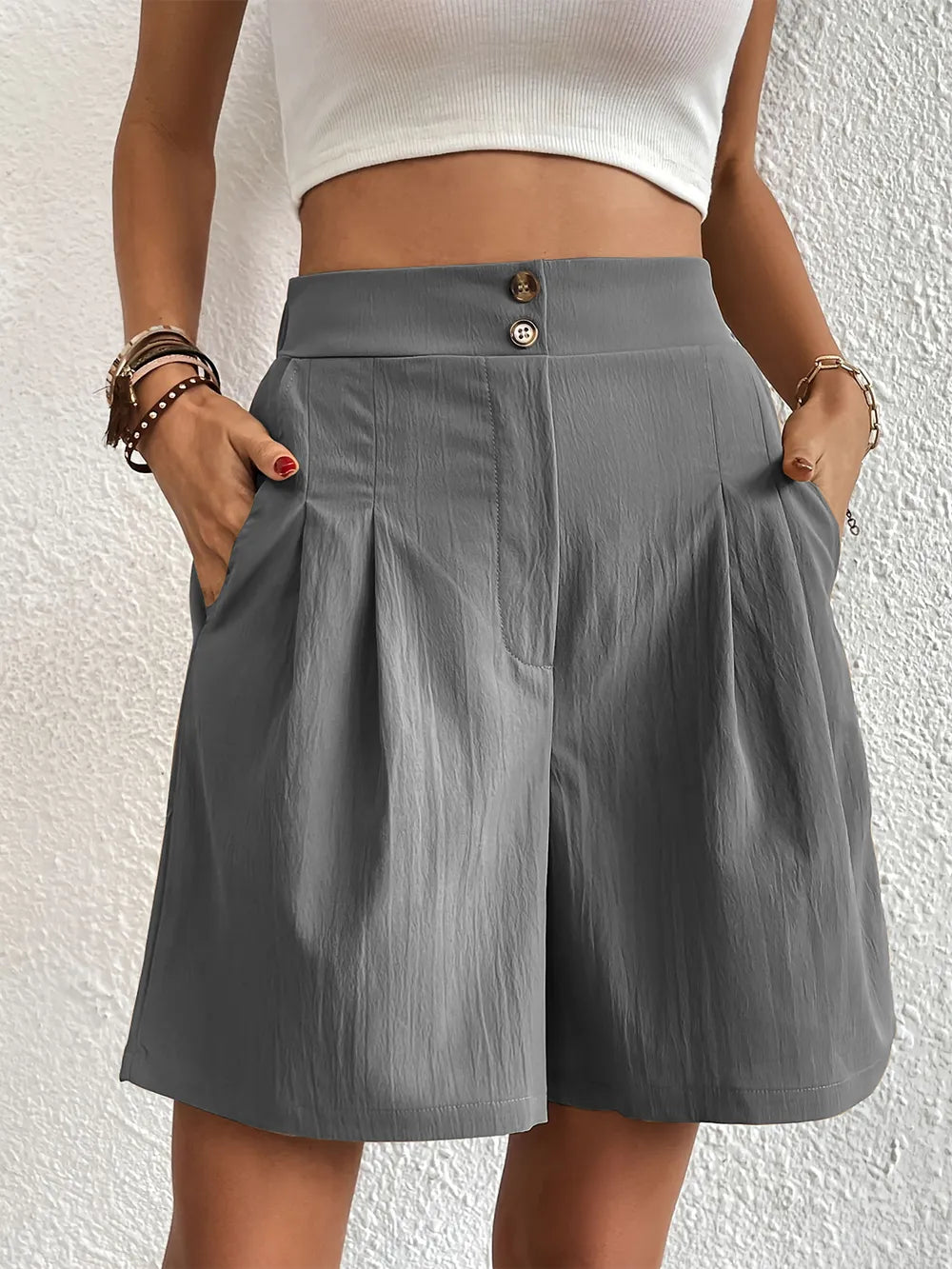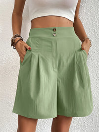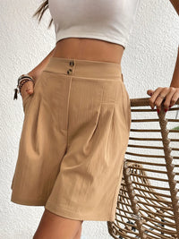 Pocketed Half Elastic Waist Shorts