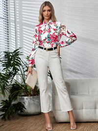 Printed Tie Neck Long Sleeve Blouse