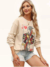 Queen of Hearts Playing Card Graphic Round Neck Sweatshirt