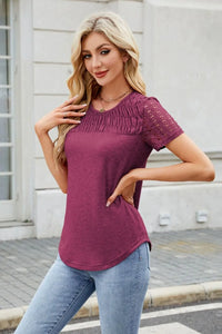 Smocked Round Neck Short Sleeve T-Shirt