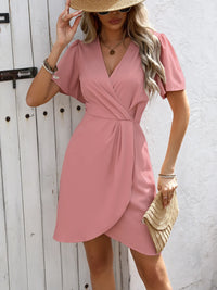 Surplice Short Sleeve Mini Dress