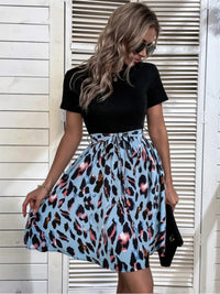 Tied Front Contrast Leopard Short Sleeve Mini Dress