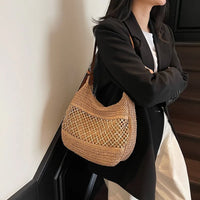 Woven Straw Crescent Shoulder Bag